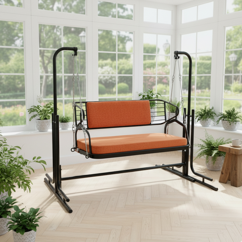 Relax in style with this 2 Seater Jhula for Adults with Reversible Seat Back, designed to bring comfort, durability, and elegance to your home. Built with a heavy-duty metal frame and strong stand, this swing offers excellent stability and long-lasting performance.