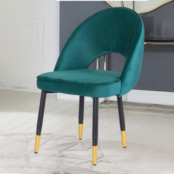 Elevate your space with the Modern Teal Velvet Lounge Chair, a statement piece that seamlessly blends luxury and comfort. Featuring plush velvet upholstery in a rich teal blue, this chair offers a soft and inviting feel. The curved backrest with an elegant cutout design provides ergonomic support, making it perfect for long hours of seating. The sturdy black metal legs with gold-tipped accents add a modern, sophisticated touch, making it ideal for living rooms, bedrooms, offices, or even dining areas. Whether you’re relaxing, working, or entertaining, this chair enhances any space with its refined charm.