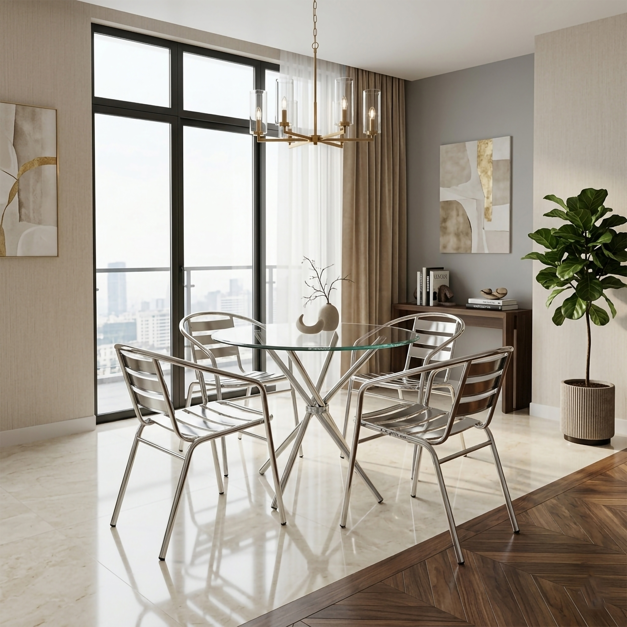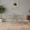 Be the first to review “Round Glass Dining Table Set 4 Seater 36 Inch with 12 mm Toughened Glass Top Stainless Steel Grade 202 Base with 4 Stackable Chairs for Dining Room Cafe (Full Steel Chairs)” Cancel reply