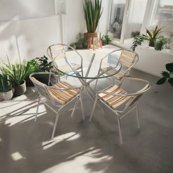 4. Comfortable Stainless Steel Chairs: The set includes 4 ergonomically designed chairs that perfectly complement the dining table. The chairs provide excellent support and comfort, making them ideal for both relaxed dining and extended gatherings.